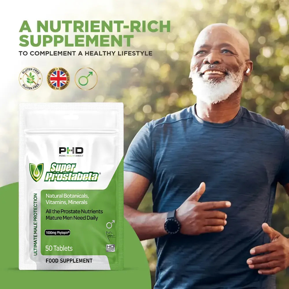 As the body changes with age, nutrient levels may fluctuate, and lifestyle factors can impact overall prostate and urinary function. Super Prostabeta® is designed to help maintain a healthy prostate by providing essential plant-based extracts, antioxidants, and key nutrients.